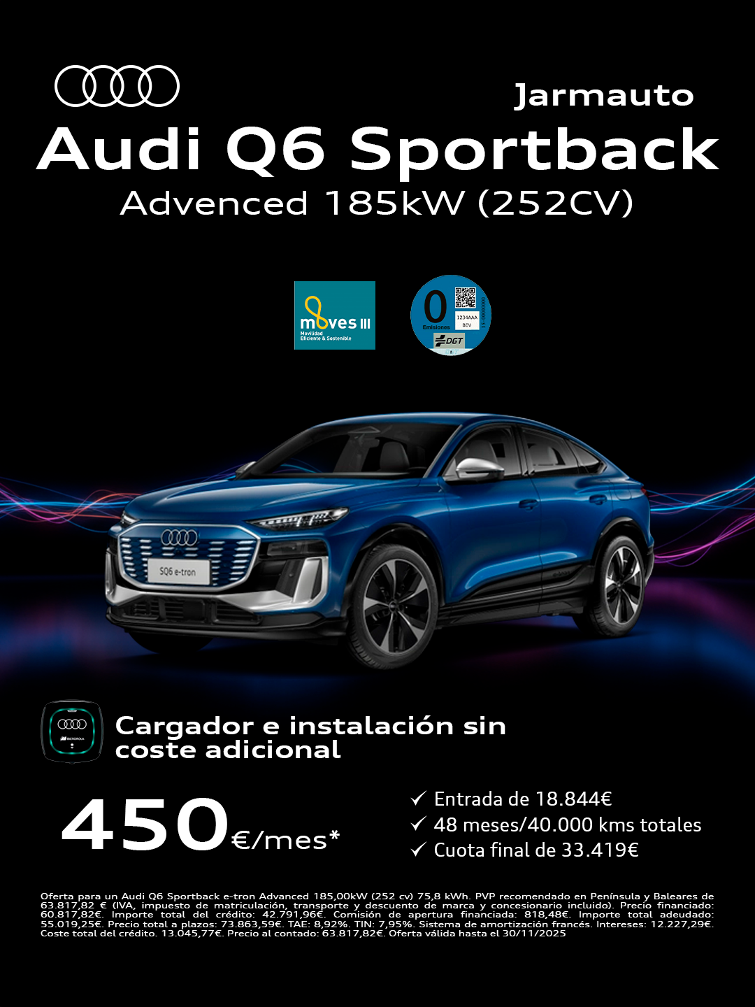 Cargador e instalación de regalo por la compra de un Audi e-tron.