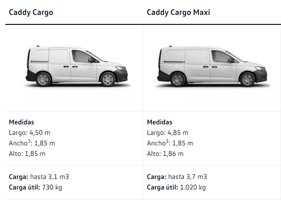 Dimensiones de la Volkswagen Caddy Cargo